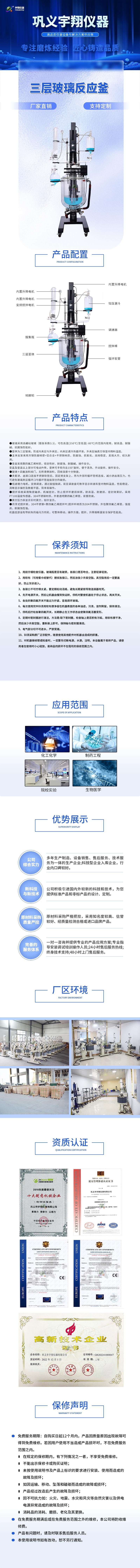 新型升降旋轉三層玻璃反應釜 SJS312-(1-100L)